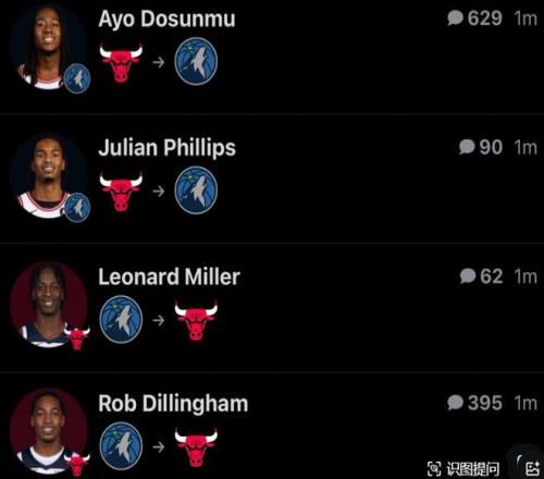 剩余的一些交易,簡單過一下 公牛將道蘇姆、菲利普斯送至森林狼,換迪林厄姆+倫納德·米勒+4次輪 凱爾特人將布歇送至爵士換來雙向球員通杰+次輪簽 鵜鶘將阿爾瓦拉多送至尼克斯得到達倫·特里+兩次輪+現(xiàn)金 76人把圓臉登+32年次輪互換權送去灰熊,將轉正巴洛 黃蜂將泰厄斯·瓊斯送去獨行俠換布蘭納姆 |