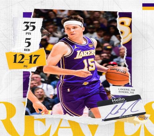 實(shí)際上,湖人現(xiàn)在真的值得期待,不僅僅是因?yàn)榭霞{德的加入,還在于里夫斯的歸來(lái)依舊是全明星水準(zhǔn),本場(chǎng)比賽,里夫斯出戰(zhàn)24分鐘,17投12中,其中三分球8投5中,得到35分6籃板2助攻。據(jù)統(tǒng)計(jì),這是里夫斯第二次砍下35+且真實(shí)命中率超過(guò)85%,隊(duì)史僅次于詹姆斯的4次,此外,本場(chǎng)里夫斯創(chuàng)下了湖人隊(duì)史上得分超過(guò)35分但出場(chǎng)時(shí)間最少的紀(jì)錄。