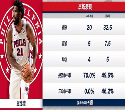 末節(jié)打了4分鐘恩比德就1個出手沒拿分,隨后的6分鐘里恩比德4中2+罰球1中1拿到5分1助攻,決勝時刻球權(quán)幾乎都在馬克西手中,球很難再度打到恩比德手中,最終恩比德未能力挽狂瀾再度幫助費城反超。