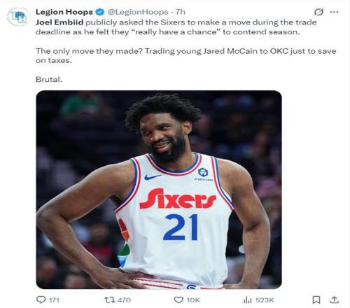 賽前根據(jù)費城記者的報道,恩比德希望球隊在交易截止日前采取行動,因為他認為球隊在本賽季有希望展開競爭??汕蜿犖ㄒ坏倪\作是將麥凱恩送到雷霆節(jié)省奢侈稅,這太殘酷了。 |