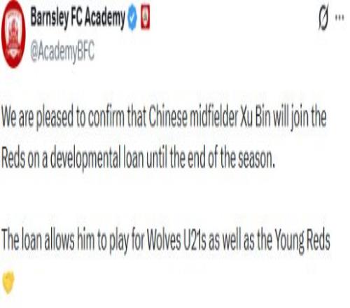 周五,狼隊宣布徐彬?qū)⒈蛔饨璧桨投魉估?,同時保留狼隊U21資格。徐彬?qū)⒃趯σ疗账咕S奇U21一戰(zhàn)迎來登陸英格蘭之后的處子秀,但他租借加盟的并非巴恩斯利一線隊。