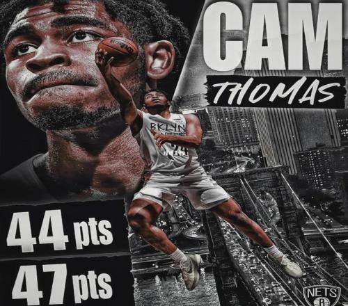 托馬斯出生于2001年10月13日,身高1米91,21屆首輪第27號(hào)秀,為期四年半的籃網(wǎng)生涯,合計(jì)出戰(zhàn)239場(chǎng)常規(guī)賽,場(chǎng)均上陣23.3分鐘,貢獻(xiàn)15.2分2.5板2.2助1.5失誤,三項(xiàng)命中率43.5%、34.3%和85.8%,曾在2023年初連續(xù)三場(chǎng)40+,分別轟下44分、47分和43分。