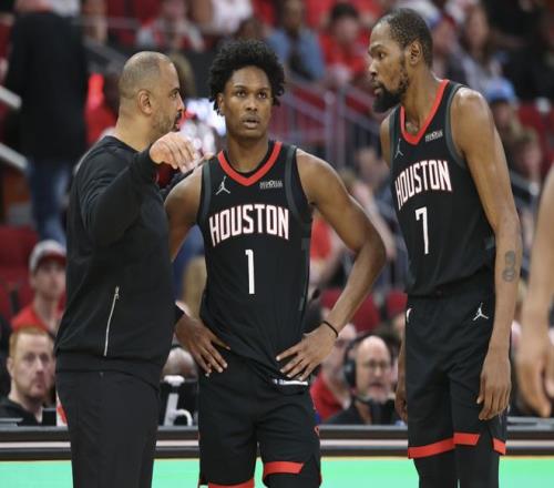 簡單來說,火箭希望托舉年輕人快速成長,實(shí)際上這些年輕人,都沒到那個(gè)級(jí)別!申京和約基奇的差距我們早就分析很多遍,申京任何跑動(dòng),都是為了自己拿到球,防守端手都不伸,逼得杜蘭特在場上直接開懟(對戰(zhàn)黃蜂時(shí)就被記者抓到杜蘭特抱怨申京,哪怕伸一下手)。阿門沒有投射,也拖空間,1號(hào)位的位置將他短板放大,對手根本不管他。謝潑德能投也敢投,但命中率直線下降,防守端成了無底洞。至于小賈,發(fā)揮一場要低迷好幾場?;鸺芾韺雍徒叹毥M,能看到的數(shù)據(jù)肯定比我們更詳細(xì)。