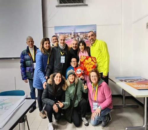 張文全拿著“馬墩墩”與當(dāng)?shù)厝撕嫌?。受訪者供圖 “現(xiàn)場人山人海,很多小孩子拿著旗子唱著歌蹦蹦跳跳,我也非常激動(dòng),親吻了火炬。人特別多,都想看得清楚一些,我走得比較慢,把火炬舉得特別高?!彼f:“作為中國人在意大利傳遞火炬,我覺得特別驕傲和自豪?!?/p>