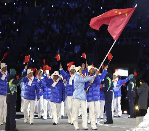2月6日,中國(guó)體育代表團(tuán)在開幕式上入場(chǎng)。新華社記者 李京 攝