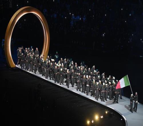 2月6日,意大利體育代表團(tuán)在開幕式上入場(chǎng)。新華社記者 程敏 攝