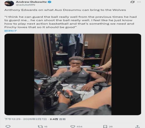 北京時(shí)間2月7日,NBA常規(guī)賽,森林狼115-119不敵鵜鶘。愛德華茲賽后接受采訪談到新援阿約-多森姆:“他防守能力很強(qiáng),投籃也很準(zhǔn),這對我們來說是很棒的補(bǔ)充。”主帥芬奇說:“如果我不把多森姆排進(jìn)輪換前8,我可能會被解雇?!?/p>