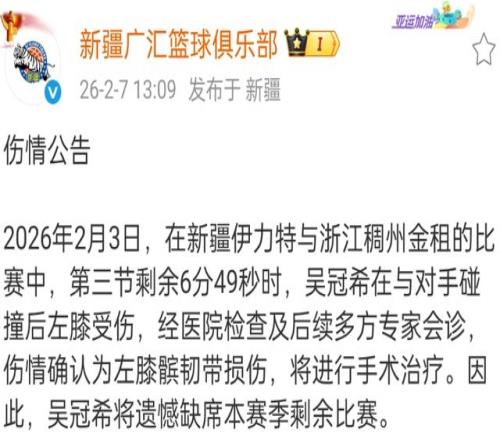 然而新疆男籃還是得到了壞消息,根據(jù)球隊(duì)方面的官方消息,內(nèi)線大將吳冠希由于膝蓋傷病遭遇賽季報(bào)銷。這對(duì)于新疆男籃來(lái)說(shuō)打擊不小,畢竟內(nèi)線原本就只有勞森一名外援,李炎哲受傷后狀態(tài)一直都不理想,按照目前的情況來(lái)看,新疆男籃有可能會(huì)補(bǔ)充一名大外援。