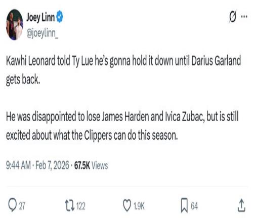 從小卡的發(fā)聲不難聽出,他仍將取勝擺在第一位,只可惜,在哈登與祖巴茨先后被交易的情況下,小卡本賽季想要有一番作為的難度明顯激增。 快船隨隊(duì)記者Joey Linn也曝出,小卡對(duì)于哈登與祖巴茨的離隊(duì)感到失望,但對(duì)本賽季快船隊(duì)的前景仍有期待。