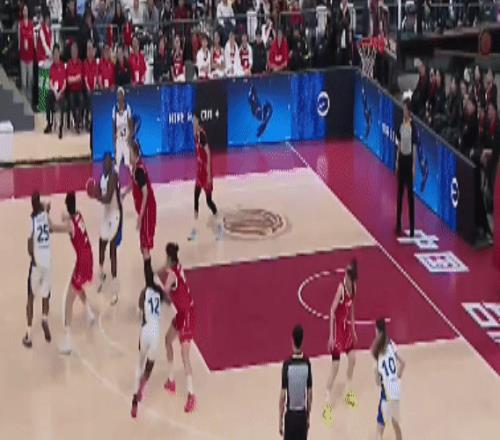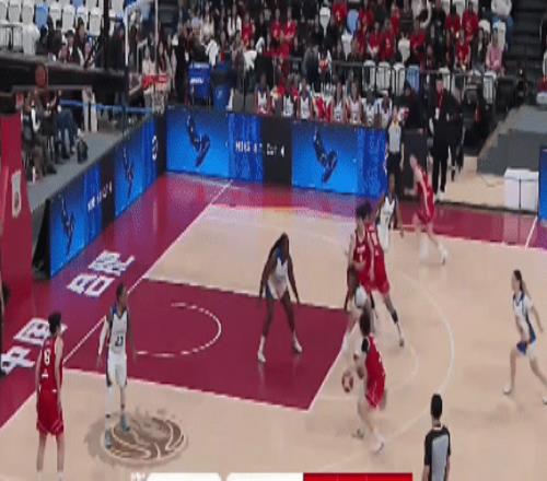進(jìn)入到下半場:國際聯(lián)隊(duì)逐漸適應(yīng)了比賽的強(qiáng)度,開始加強(qiáng)逼搶。中國隊(duì)中鋒使用劉禹彤、前鋒是陳明伶和羅欣棫,后衛(wèi)使用張曼曼、楊舒予。這也是宮魯鳴指導(dǎo)的技戰(zhàn)術(shù)特點(diǎn):上下半場首發(fā)一致。劉禹彤籃下拿分: