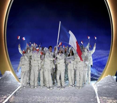 圖源:視覺中國 法國代表團(tuán):Le Coq Sportif 法國代表團(tuán)的開幕式服裝由本土品牌Le Coq Sportif(俗稱“法國公雞”)打造。設(shè)計(jì)以白色為主色調(diào),在帽子處巧妙將國旗藍(lán)白紅三色轉(zhuǎn)化為浪漫的粉色系,柔化競技運(yùn)動的剛硬感。不過,比服裝更引人注目的是法國代表團(tuán)整體展現(xiàn)出的那種松弛感。