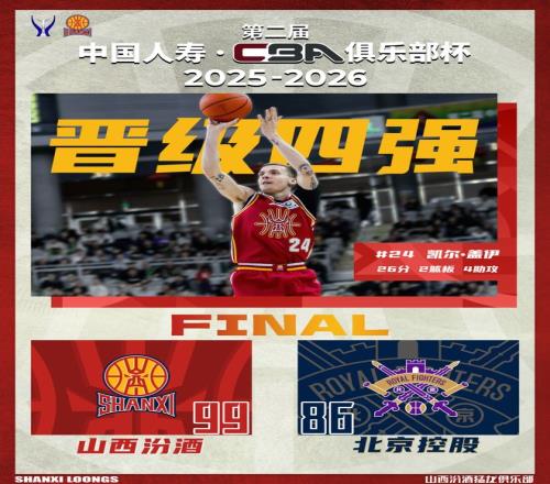 北京時間2026年2月7日19:30,第二屆中國人壽·CBA俱樂部杯決賽階段繼續(xù)進行,山西汾酒在伊泰·呼和浩特內(nèi)蒙古體育館,迎來與北京控股的1/4決賽對決。本場比賽,山西隊上半場處理球急躁,防守端出現(xiàn)太多無畏的犯規(guī),中場調(diào)整后,全隊在攻防兩端均有明顯改善,進攻明確,防守積極,并且在末節(jié)展現(xiàn)出足夠韌勁,最終取得勝利,全場比賽結(jié)束,山西汾酒99:86戰(zhàn)勝北京控股,成功晉級四強。