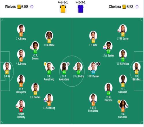 【出場陣容】 切爾西首發(fā):1-桑切斯、27-古斯托(75’34-喬什·阿昌龐)、29-福法納、23-查洛巴、3-庫庫雷利亞、17-桑托斯(84’21-哈托)、25-凱塞多、8-恩佐、10-帕爾默(61’49-加納喬)、7-內(nèi)托、20-佩德羅(75’9-德拉普)。 切爾西替補:28-泰迪·洛維、5-巴迪亞西勒、19-馬馬杜·薩爾、38-吉烏、41-埃斯特旺。 狼隊首發(fā):1-若澤·薩、2-多赫蒂(46’21-羅德里戈·戈麥斯)、3-烏戈·布埃諾、4-圣地亞哥·布埃諾、15-耶森·莫斯克拉、8-若昂·戈麥斯、47-A·戈麥斯(80’27-貝萊加德)、9-阿姆斯特朗、11-黃喜燦(43’37-克雷伊奇)、14-阿洛科達爾、36-馬特烏斯·馬內(nèi)。 狼隊替補:31-約翰斯通、6-沃爾費、17-佩德羅·利馬、38-查丘瓦、62-羅林斯、74-埃多齊。 |
