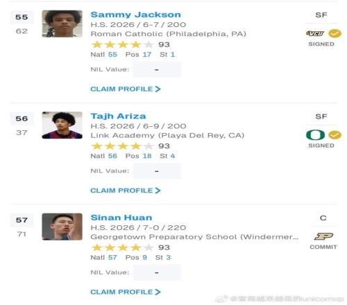整體來看,張博源收到的offer含金量不錯,來到美高之后的表現(xiàn)也是漸入佳境,于是收獲了一定回報: 本周更新的Rivals2026屆全美高中生排名,張博源上升至第25位,成為該榜單歷史上排名最高的中國球員,另外,同批的國青內(nèi)線核心郇斯楠則排名57位,兩人同為四星高中生 。