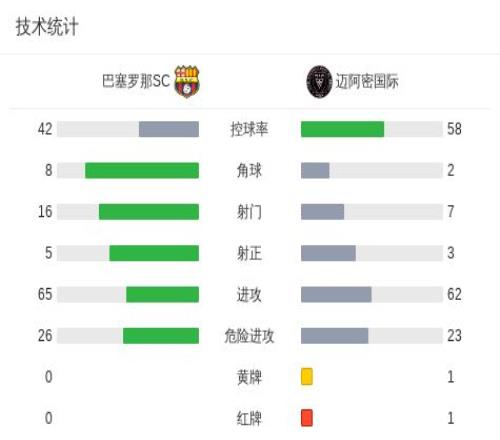 第25分鐘,巴塞羅那SC球員射門,邁阿密國際后衛(wèi)將球封堵