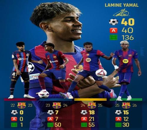這可是亞馬爾個人的第80個制造進球記錄,136場比賽40球40助攻,這天賦,真是無人能阻。 此外,亞馬爾是本賽季五大聯(lián)賽第一個完成100次過人記錄的,的確攔不住。
