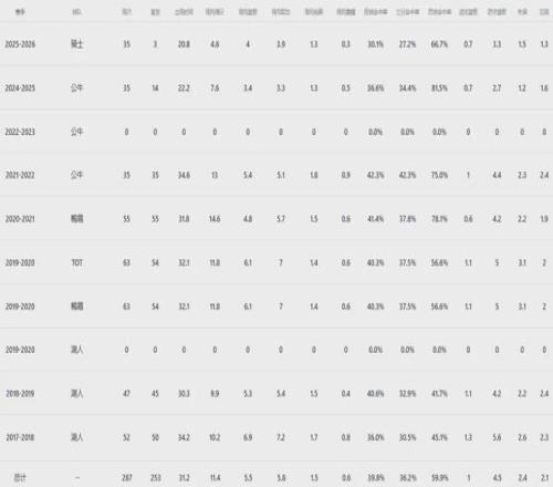 迄今為止九年的NBA生涯,球哥合計(jì)出戰(zhàn)322場常規(guī)賽,平均每個(gè)賽季才打約40場球,尤其22-24連續(xù)兩個(gè)賽季報(bào)銷,至今沒有打過一場季后賽。