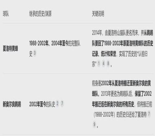 這是黃蜂隊(duì)史自1999年4月以來,近27年首次取得9連勝。黃蜂的前身是夏洛特山貓,2004年才建隊(duì),怎么會有1999年的紀(jì)錄?看看下面這張圖大家就知道了,現(xiàn)在的黃蜂不僅繼承了山貓隊(duì)史,還有1988-2002老夏洛特黃蜂的隊(duì)史。