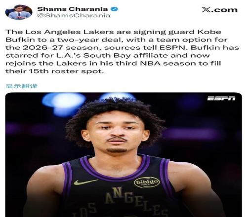 北京時間2月8日,根據(jù)ESPN名記Shams報道,洛杉磯湖人用一份1+1的兩年正式合同簽約后衛(wèi)科比-巴夫金,其中第二年是球隊選項,他成為湖人陣容第15人,曾經(jīng)在G聯(lián)賽有過單場41+8+8三分表現(xiàn)。