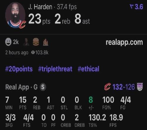 哈登騎士首秀先抑后揚(yáng),上半場6中1,下半場7中6包括關(guān)鍵時(shí)刻連續(xù)轟進(jìn)兩記三分球,最終全場出戰(zhàn)約32分鐘,投籃13中7(三分8中5),罰球4中4貢獻(xiàn)23分2板8助1斷,帶隊(duì)132-126擊敗國王。