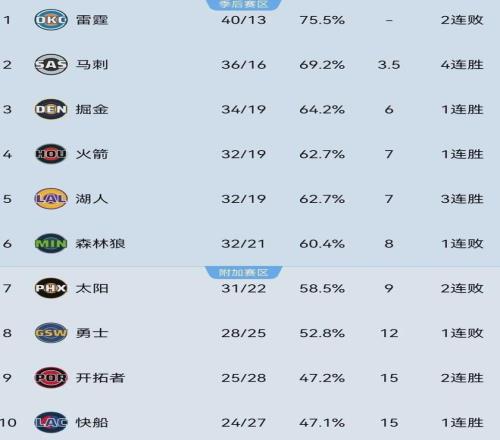 火箭當(dāng)前以32勝19負(fù)位列西部第四,戰(zhàn)績(jī)與第五的湖人打平,僅領(lǐng)先第七的太陽2個(gè)勝場(chǎng),落后第三的掘金1個(gè)勝場(chǎng),既有希望沖擊前三甲又面臨著掉出季后賽區(qū)域的危險(xiǎn)。