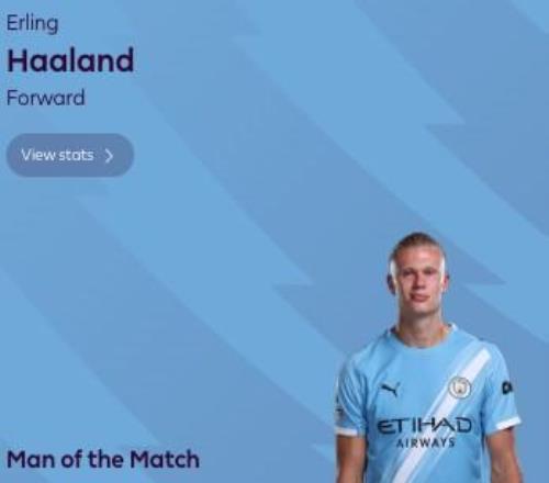 傳射建功,哈蘭德當(dāng)選利物浦vs曼城全場(chǎng)最佳球員