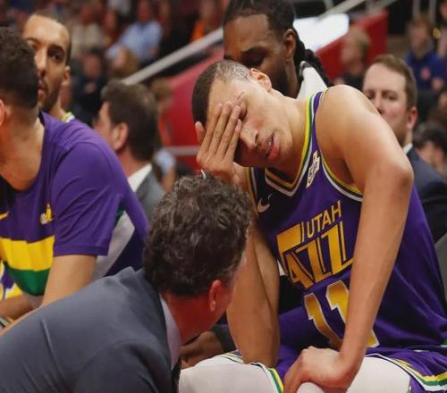 可惜事與愿違,從二年級(jí)開始,埃克薩姆就不斷在與傷病作斗爭(zhēng): ——2015年休賽期,??怂_姆在代表澳大利亞出戰(zhàn)國(guó)家隊(duì)期間遭遇了左膝十字韌帶撕裂,隨后整個(gè)2015-16賽季報(bào)銷 ——2016-17賽季,??怂_姆復(fù)出,并且為爵士打了66場(chǎng)比賽,場(chǎng)均18.6分鐘內(nèi),就能得到6.2分2.0籃板1.7助攻,投籃命中率42.7%,罰球命中率79.5%,比新秀賽季有進(jìn)步,但,這也成為了他生涯最后一個(gè)健康的賽季 ——2017-18賽季,??怂_姆遭遇了左肩脫臼,一共只打了14場(chǎng),出戰(zhàn)的比賽,他場(chǎng)均能拿到8.1分1.9籃板3.1助攻,比前一個(gè)賽季再次取得進(jìn)步,但當(dāng)時(shí)的球迷絕對(duì)想不到,那一年的得分、助攻后來(lái)都成了他的生涯最高 ——2018-19賽季,??怂_姆遭遇右膝髕韌帶撕裂,賽季報(bào)銷 ——2019-20賽季,養(yǎng)傷加上口罩年,只打了35場(chǎng)比賽,需要說(shuō)的是,這一年的??怂_姆已經(jīng)被爵士放棄,他在一筆交易里被送到了騎士 ——2020-21賽季,小腿拉傷,只打了6場(chǎng)比賽,賽季報(bào)銷