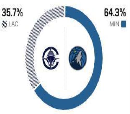 反觀森林狼,上一場(chǎng)比賽意外不敵鵜鶘,近期狀態(tài)起伏不定,此前也曾負(fù)于擺爛的灰熊。上場(chǎng)比賽森林狼的防守端漏洞明顯,錫安與貝聯(lián)手轟下59分,且多數(shù)得分均來(lái)自籃下強(qiáng)攻,徹底擊穿了森林狼的內(nèi)線防線。即便戈貝爾交出12分16籃板2搶斷3蓋帽的全面數(shù)據(jù),僅憑一己之力也難以撐起球隊(duì)整體防守,森林狼若想穩(wěn)住戰(zhàn)績(jī),還需在攻防兩端提升整體性與協(xié)同性。本場(chǎng)比賽,快船的加蘭、馬瑟琳繼續(xù)缺陣,森林狼新援蘇道姆出戰(zhàn)。賽前,ESPN看衰森林狼,預(yù)測(cè)快船本場(chǎng)比賽的勝率只有35.7%,而森林狼的勝率高達(dá)64.3%。