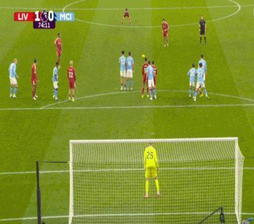第74分鐘,利物浦前場任意球機會,面對只有兩人的曼城人墻,索博斯洛伊轟出世界波,皮球擊中右側立柱后入網(wǎng),門將唐納魯馬幾乎毫無反應。利物浦1比0領先。