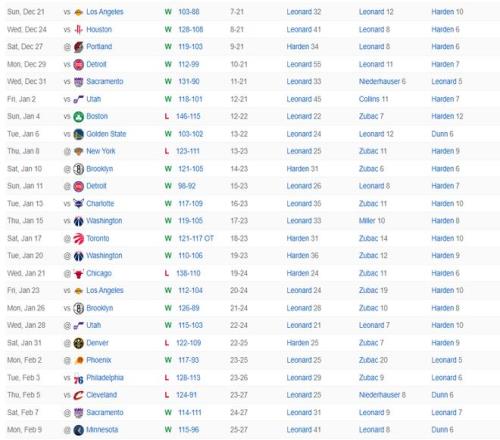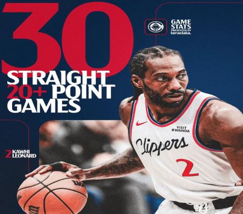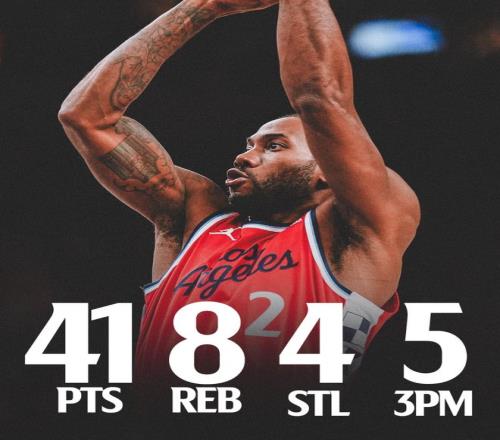 此役后倫納德又創(chuàng)造多項(xiàng)紀(jì)錄: 1.小卡連續(xù)30場20+繼續(xù)刷新職業(yè)生涯新高; 2.小卡連續(xù)30場20+在快船隊(duì)史超過格里芬; 3.此役后小卡場均28分職業(yè)生涯新高; 4.倫納德賽季第四場40+生涯新高;