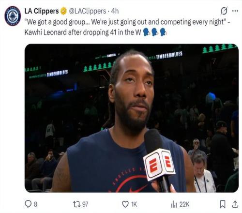 賽后倫納德接受采訪,他說道:我們是一支出色的球隊(duì),我們每一晚都為了勝利全力以赴去拼搏競爭,我們有一個(gè)目標(biāo)。 但在兩天之前,倫納德在采訪還說:顯然球隊(duì)試圖讓陣容變得更年輕,因?yàn)槿ツ晡覀兊年嚾菔锹?lián)盟最老,明年是選秀大年他們可能在做一些準(zhǔn)備。過去六周我以為我們進(jìn)入正軌,但這與我預(yù)想中我們可能的發(fā)展方向完全相反。(小卡的言論有些反復(fù),哈登、祖巴茨都被扎心)