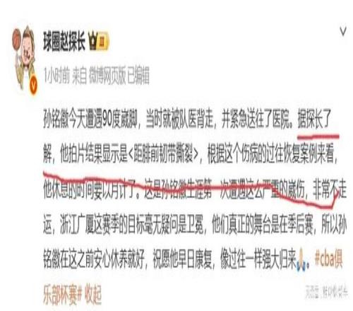 CBA冠軍后衛(wèi)傷停曝孫銘徽距腓前韌帶撕裂:迪亞洛這次被誤會(huì)了