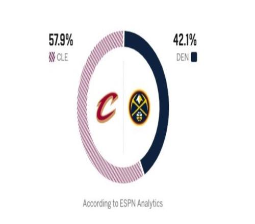 反觀掘金這邊,上一場(chǎng)擊敗公牛,終于止住了3連敗的頹勢(shì),目前以34勝19負(fù)排在西部第三。約基奇復(fù)出后,球隊(duì)并未迎來(lái)理想的狀態(tài)提升,此前的連敗還讓掘金與西部前二的差距被拉開(kāi),身后火箭、湖人也不斷縮小差距。對(duì)陣公牛一役,帶傷出戰(zhàn)的穆雷砍下28分11助攻,約基奇貢獻(xiàn) 22 分14籃板17助攻的大號(hào)三雙,成為NBA歷史三雙次數(shù)第二多的球員。替補(bǔ)球員小哈達(dá)威拿下23分,掘金進(jìn)攻端火力依舊強(qiáng)勁,但防守端問(wèn)題突出,過(guò)去4場(chǎng)比賽失分均超過(guò)120分。賽前,ESPN預(yù)測(cè)本場(chǎng)勝率:騎士57.9%,掘金42.1%。