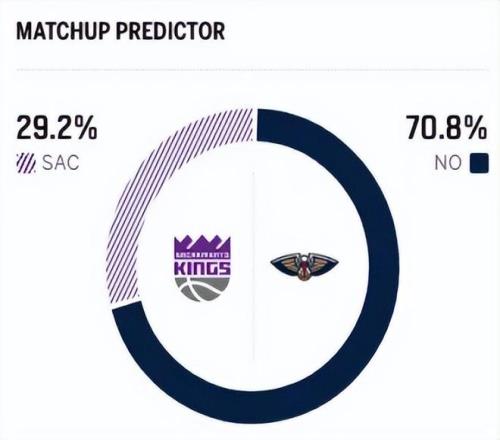 這是兩隊本賽季的第四次交鋒,前三次交手,國王取得2勝1負,占據(jù)優(yōu)勢;而過去10次交手中,鵜鶘取得了7勝3負,兩隊也算是半斤八兩了。 賽前,美媒ESPN對本場比賽進行了預(yù)測,鵜鶘勝率高達70.8% ,國王勝率僅有29.2% ,差距非常明顯。