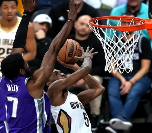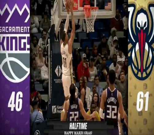 次節(jié)回來,瓊斯迎著防守強投三分還中,錫安籃下又完成霸氣補扣,鵜鶘一波9-0領(lǐng)先國王到14分。威少突破被切球失誤,隨后站在裁判身前抱怨,被吹罰技術(shù)犯規(guī),‘賠了夫人又折兵’。雷諾突破挑籃命中,隨后二次進攻補籃再得手,一人連拿6分止血,普勞登三分跳投命中后,威少反擊快下突破上籃再打進,國王一波流追到8分分差??蛱斗€(wěn)穩(wěn)命中,墨菲急停三分也投進,半場戰(zhàn)罷,鵜鶘61-46領(lǐng)先國王15分。