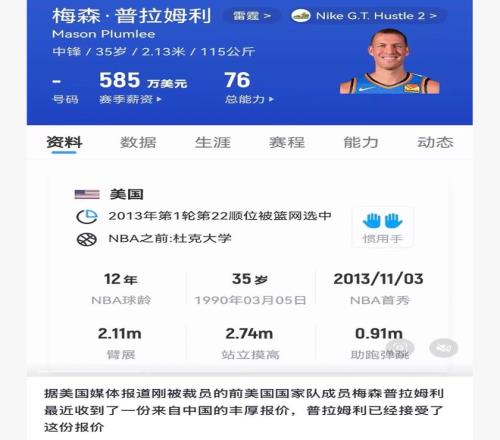 今年35歲的普拉姆利,曾是夢之隊的主力中鋒,他擁有非常高的籃球智商,擁有非常出色的策應(yīng)能力,擁有非常不錯的防守能力,擁有非常不錯的護框能力,當(dāng)然了,他還擁有非常不錯的終結(jié)能力。 考慮到普拉姆利現(xiàn)在的情況,他想獲得新的NBA合同,可能會比較困難,前往 CBA聯(lián)賽打球,也許是一個非常不錯的選擇。當(dāng)然了,如果普拉姆利加盟廣東隊,那么,薩林杰就很有可能會被裁掉,畢竟,兩個人位置重疊了。所以,普拉姆利的到來,薩林杰就會讓位。