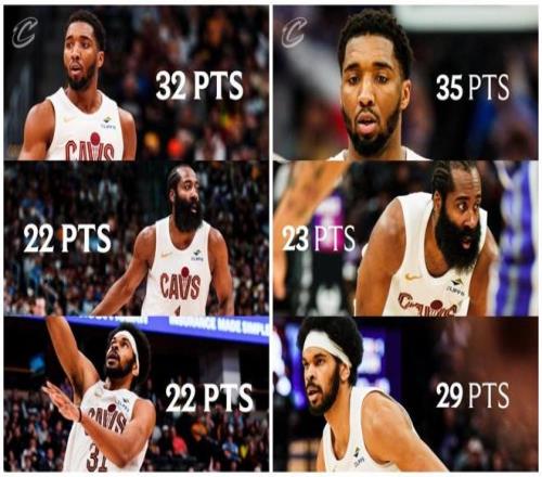 除此之外,哈登的加入更是成功激活艾倫,后者本場(chǎng)16中10,又轟下22分13板1助攻兩雙。 自從哈登加入以來(lái),他的場(chǎng)均數(shù)據(jù)從13.9分8.1板2.1助暴漲至25.5分11.5板1助,儼然扮演起三當(dāng)家角色。 賽后騎士隊(duì)也曬出哈登加盟以來(lái),過(guò)去兩場(chǎng)騎士隊(duì)三大核心的數(shù)據(jù)表現(xiàn),米切爾連續(xù)砍下30+,哈登與阿倫連續(xù)交出20+表現(xiàn)。
