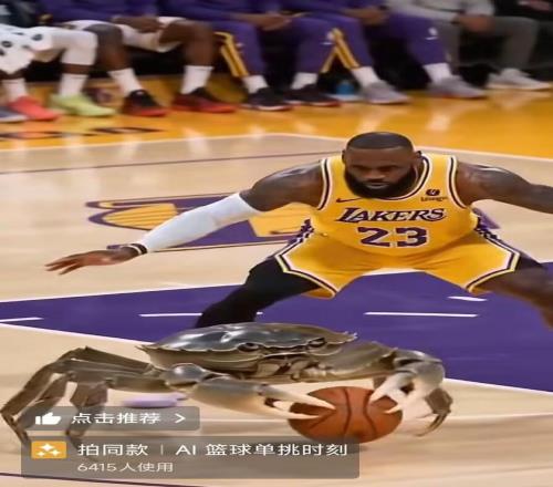 極目新聞?dòng)浾?郭奕 這邊,一臉稚氣的幼童嫻熟拍著籃球,竟將NBA超級球星“勒布朗·詹姆斯”給晃倒;那邊,詹姆斯又被一輛宛如活物的電動(dòng)車“打爆”,這輛電動(dòng)車輕松過掉他后將球送進(jìn)籃筐;甚至還有人利用AI技術(shù),讓螃蟹運(yùn)球和詹姆斯單挑……近日,極目新聞?dòng)浾咦⒁獾剑扯桃曨l平臺(tái)掀起一股AI籃球單挑詹姆斯的風(fēng)潮,眾多網(wǎng)友通過AI技術(shù)制作視頻,不少網(wǎng)友調(diào)侃:“詹姆斯在短視頻里被打爆了?!?/p>