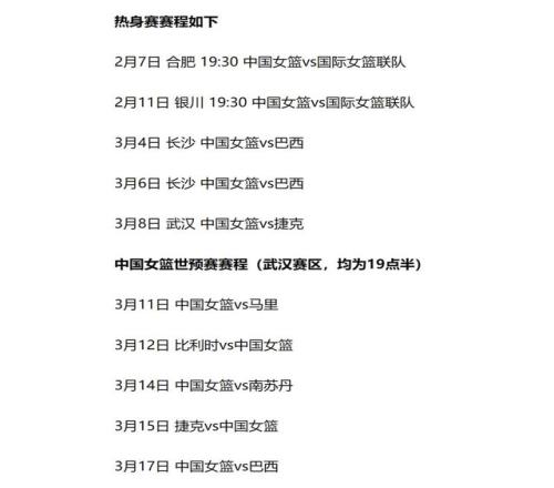 另外,在中鋒位置上,有鑒于韓旭、李月汝暫不回歸。中國女籃選擇了絕對的5號位高中鋒張子宇,以及更擅長打4號位的劉禹彤、陳明伶組成中鋒三人組。和國際聯(lián)隊(duì)的第1場熱身賽,這三位中鋒均打出了各自的特點(diǎn),張子宇砍下21分全隊(duì)最高,陳明伶、劉禹彤很有速度優(yōu)勢,豐富了戰(zhàn)術(shù)。 明晚和國際聯(lián)隊(duì)的比賽之后,中國女籃國家隊(duì)將得到短暫的休息,春節(jié)假期。然后到了3月開始,中國隊(duì)將在長沙和巴西隊(duì)打2場熱身賽,在武漢和捷克打1場熱身賽。等到3月11日開始,中國女籃就將開啟世界杯資格賽之旅。