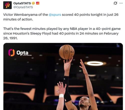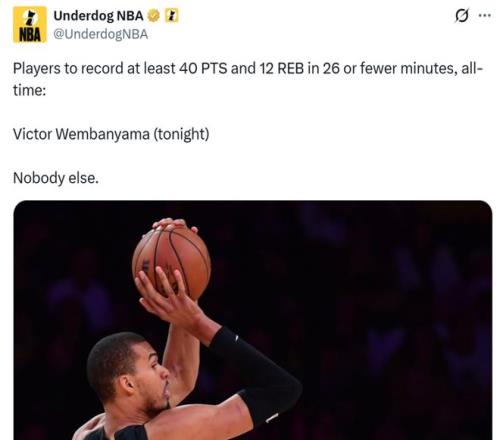 文班亞馬40+12:單節(jié)25分狂創(chuàng)11項紀錄超鄧肯妖刀+比肩張伯倫