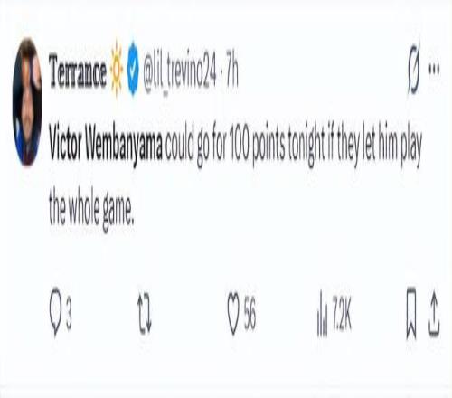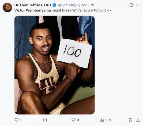 美國(guó)媒體認(rèn)為文班亞馬就是當(dāng)代的張伯倫,而且覺得只要文班亞馬在這場(chǎng)比賽能打滿全場(chǎng)甚至可以完成張伯倫那單場(chǎng)100分大關(guān)的蓋世紀(jì)錄。 |