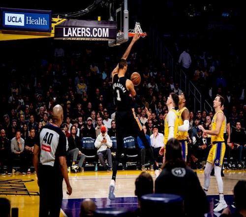 肯納德中投得分,巴夫金2罰全中為湖人打破僵局,布萊恩特轟進遠投,文班亞馬跳投取分,馬刺打出了23比10的攻勢,將分差擴大至30分。布朗尼被封蓋,尼克史密斯拋投打進,海斯命中三分球,米奇約翰遜請求暫停。卡斯?fàn)柗馍w八村塁的扣籃,肯納德補籃得分,湖人連追7分,馬刺再次請求暫停??ㄋ?fàn)栆騻聢?,文班亞馬暴扣,八村塁單打連續(xù)不中。布萊恩特與克萊伯對射三分球,布萊恩特被布朗尼犯規(guī),前者2罰1中。 哈珀上籃得分,布萊恩特2罰不進,克萊伯跳投得手。文班亞馬助攻布萊恩特暴扣,布朗尼跳投打鐵,??怂怪ノ陌鄟嗰R空接扣籃。布朗尼回敬三分球,文班亞馬2罰全中,半場打完,馬刺以84比55領(lǐng)先,湖人單節(jié)以25比37落后。文班亞馬單節(jié)8中4得到了12分,布萊恩特14分。需要關(guān)注的是,殘陣湖人讓馬刺在上半場轟下84分,創(chuàng)下紫金軍團本賽季半場失分紀錄。 肯納德、八村塁合力防守文班亞馬