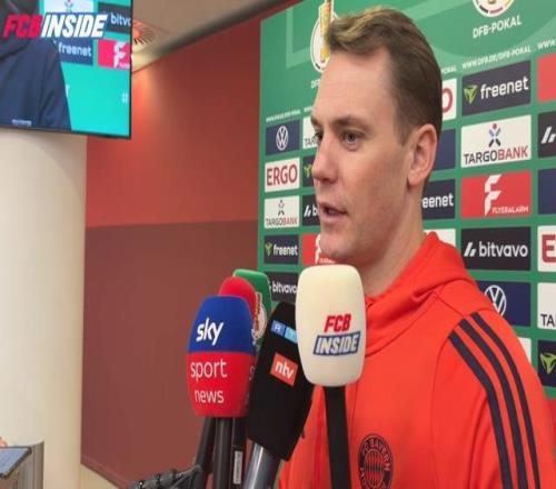 德國(guó)杯1/4決賽,拜仁2-0戰(zhàn)勝萊比錫,拜仁門將諾伊爾賽后在混采區(qū)接受了采訪。