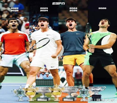 2003年溫網(wǎng),首次闖進(jìn)大滿貫決賽的費德勒,最終擊敗澳洲大炮菲利普西斯,問鼎個人首個大滿貫冠軍。 2004年,他又依次拿下了除法網(wǎng)外的三大滿貫,使得個人大滿貫數(shù)量增加積少成多。在此期間,他丟掉的大滿貫冠軍數(shù)寥寥。除了法網(wǎng)外,他還在2005年的百年澳網(wǎng)半決賽中不敵薩芬。 阿爾卡拉斯: 3年4個月(2022美網(wǎng)-2026澳網(wǎng)) 阿卡達(dá)成七滿貫的時間,僅僅多于費德勒,要短于德納兩大巨頭。阿卡首次登頂是在2022年美網(wǎng),當(dāng)時在一場誰贏誰就是世界第一的對決中,阿卡擊敗魯?shù)?,最終問鼎。