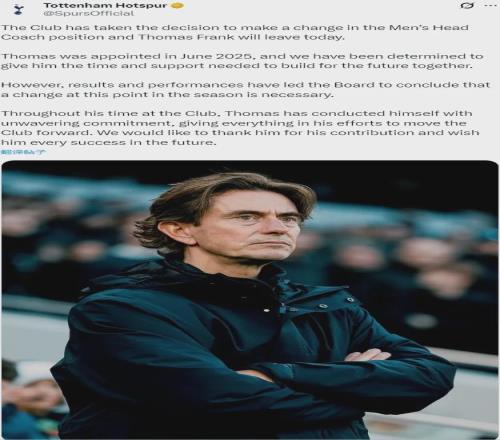 官方:熱刺宣布解雇了托馬斯-弗蘭克。 弗蘭克在去年夏天被任命為了熱刺主帥,然而,球隊至今為止的“成績和表現(xiàn)”讓俱樂部高層認(rèn)為改變已經(jīng)是勢在必行。 熱刺目前排在英超第16位,僅僅比降級區(qū)高出5分,并且最近17輪比賽只贏了2場,總的來說,弗蘭克執(zhí)教熱刺出戰(zhàn)了38場各項比賽,戰(zhàn)績?yōu)?3勝11平14負(fù)。 根據(jù)天空體育的說法,熱刺目前最有可能的選擇是內(nèi)部任命一位代理主帥,然后到夏天再做長期打算。