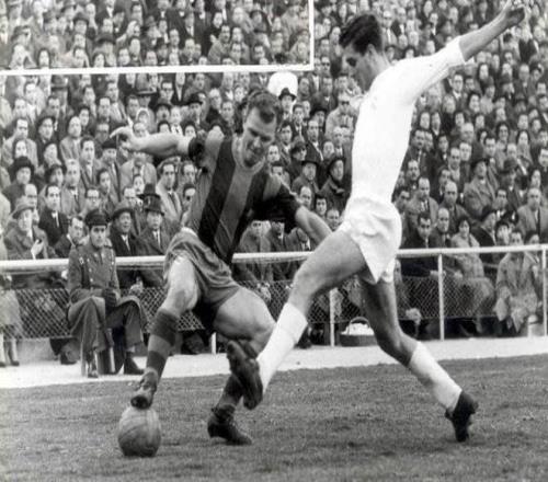 在巴薩為他舉行的告別賽上,迪斯蒂法諾與普斯卡什也穿上了巴薩球衣,三位19世紀50年代的偉大巨星留下了這張寶貴的合影。