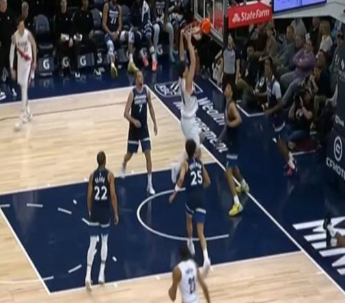 這一場比賽呈現(xiàn)一邊倒的局面,他們從比賽一開始就被對手壓著打,一直沒有什么反超的機會。開拓者隊的核心球員阿夫迪亞表現(xiàn)低迷,運動戰(zhàn)14投3中,在三分線外7投0中,只拿到了11分5籃板3助攻。 老將霍樂迪倒是打起精神,但命中率也一般般,全場22投9中拿到了23分5籃板5助攻,但是回天乏術(shù)。比賽打到了第三節(jié),事實上已經(jīng)進入了垃圾時間,于是開拓者隊開始派替補球員上去打球。 第四節(jié)還剩不到5分鐘,楊瀚森終于得到了出場時間,他還是一上場就拿出了積極性,不斷嘗試阻攔對手的進攻,還能在進攻端打出一些表現(xiàn)。楊瀚森在一次面對對手的內(nèi)線吊球的時候高高跳起,攔截成功,獲得了1次搶斷。