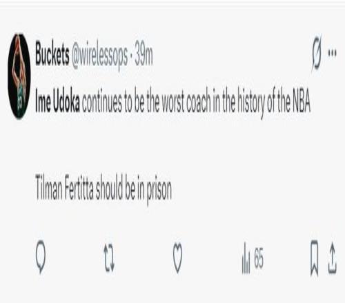 雄鹿球迷:烏度卡依舊是聯(lián)盟歷史最差的交投,費(fèi)爾蒂塔更是一個戰(zhàn)犯。
