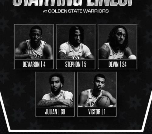 首發(fā)陣容方面,勇士隊(duì)這邊,庫里(膝傷)缺席至全明星后,巴特勒賽季報(bào)銷,剛引進(jìn)的波爾津吉斯仍在恢復(fù)期,塞斯·庫里、克賴爾也不打,科爾教練排出的首發(fā)五人組為:斯潘塞、梅爾頓、桑托斯、穆迪、追夢-格林;馬刺這邊,卡斯?fàn)柟桥璐靷琅f帶傷出戰(zhàn),首發(fā)陣容則為:卡斯?fàn)枴⒏?怂?、瓦塞爾、尚帕尼、文班亞馬。