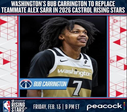 在弗拉格與薩爾因傷缺席全明星新秀挑戰(zhàn)賽情況下,他們的頂替者出爐,分別是爵士新科5號(hào)秀貝利,他本賽季場均得到11.6分3.8 籃板,以及奇才2024年14號(hào)秀卡林頓,他本賽季場均得到10.2分3.5籃板4.6助攻。 |